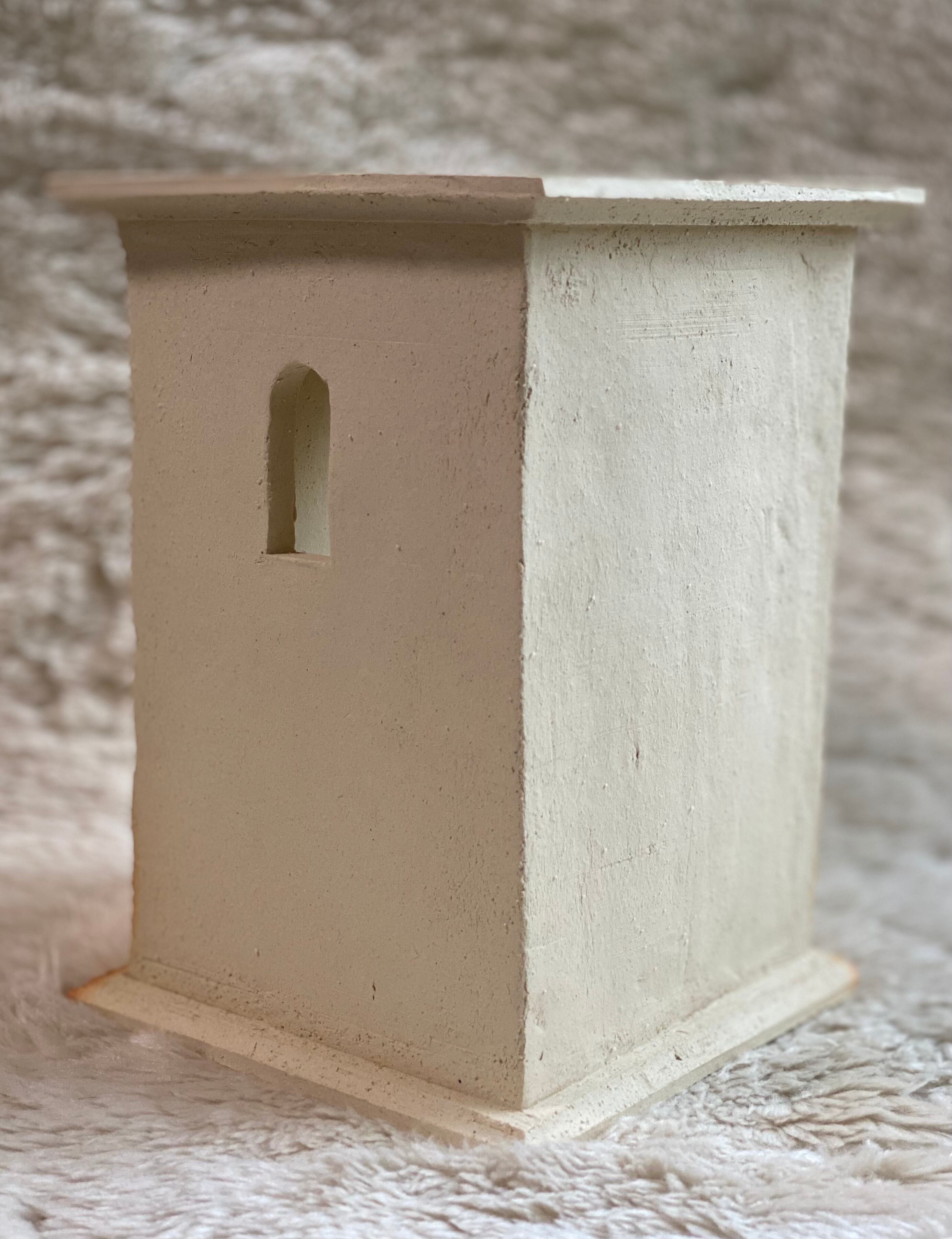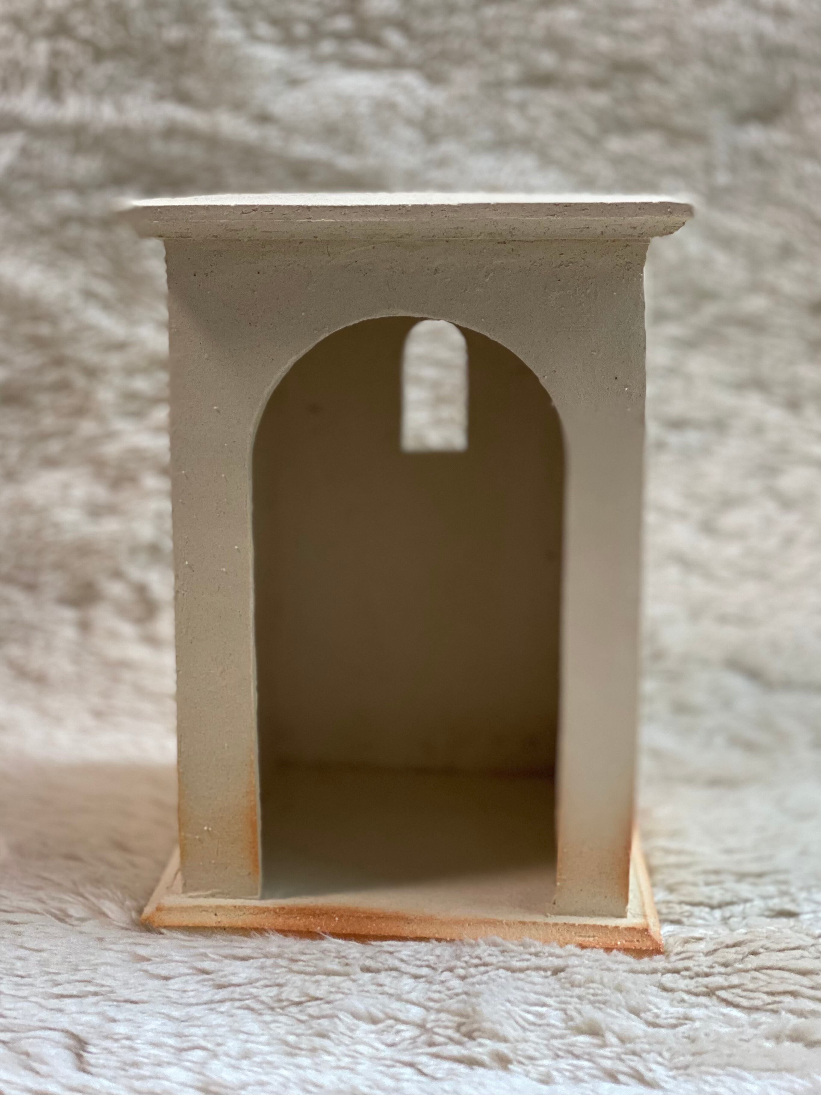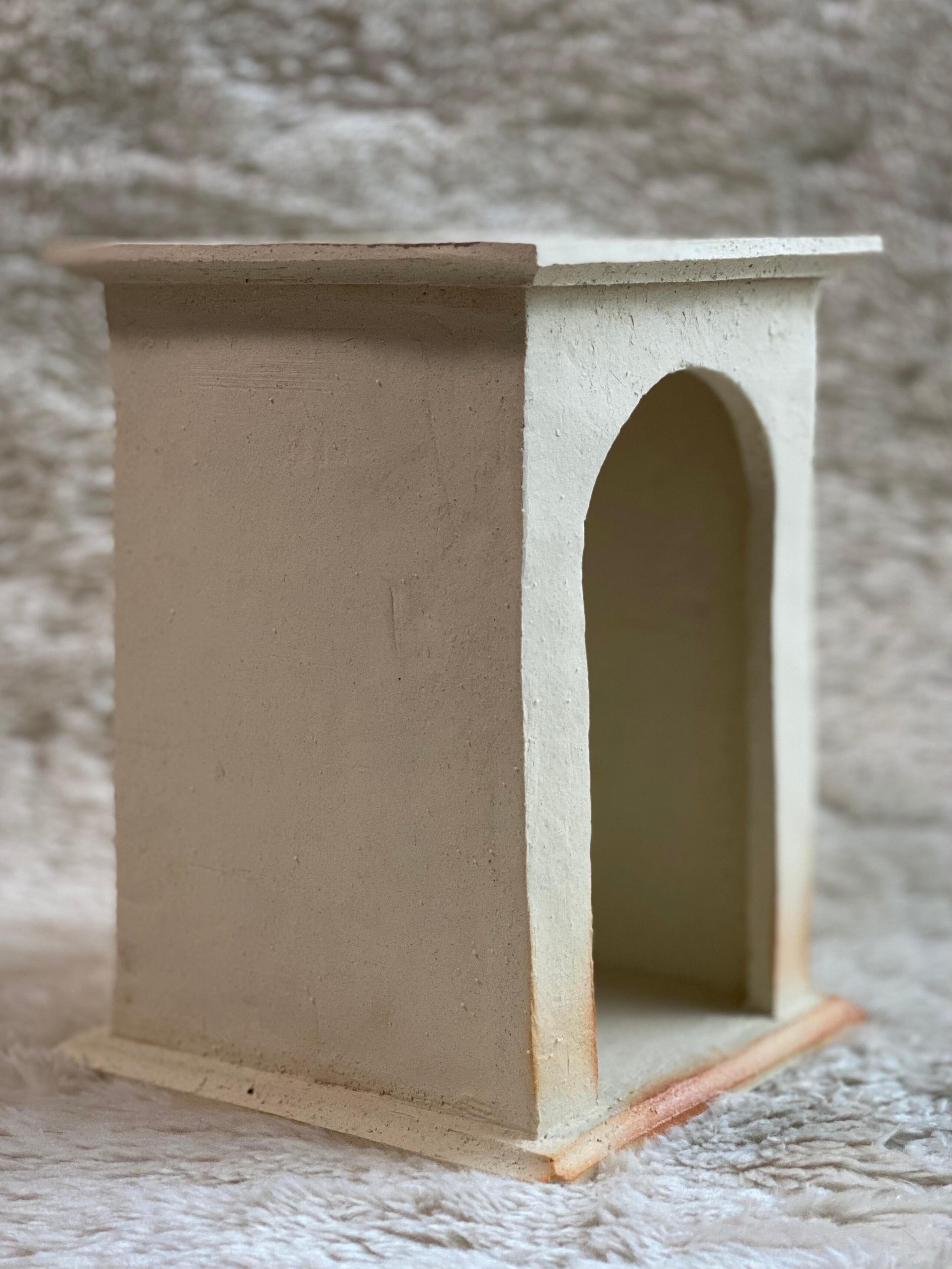 アーチ小窓のある小さなお部屋の花台です。小窓から光が差し込みます。